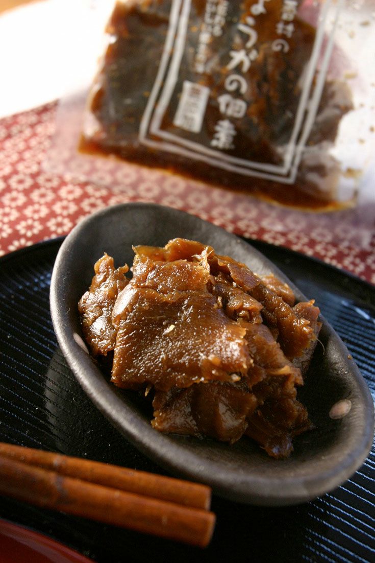 昔、明日香は生姜の産地で、各家庭でも独自の味付けで生姜の佃煮を作っていました。この佃煮は薄めにスライスし、甘めに仕上げています。