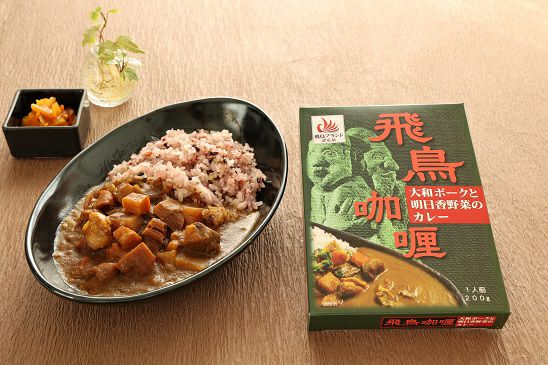 明日香村の新鮮野菜と奈良ブランド肉"大和ポーク"を使った、ちょっと贅沢な本格カレー。しっかりと効いたスパイスのなかでも、ポーク特有の甘みが引き立ちます。