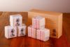 キューブ型のお米がぴったりと6個入った箱は、見た目は木箱のようですが、再生紙を利用した環境にやさしい紙箱です。