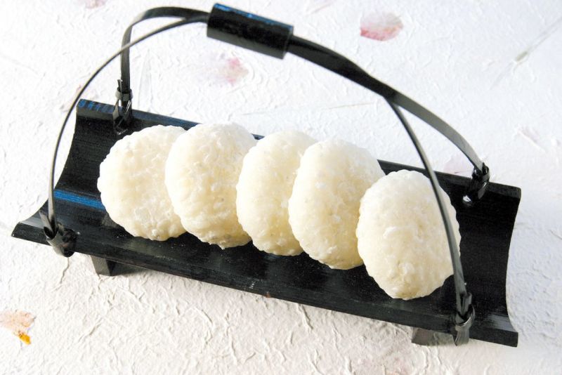 餅米にうるち米を混ぜてあります。表面にお米の粒が見え、歯切れの良い食感のお餅です。