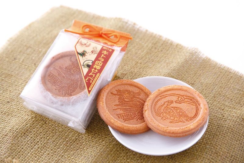 キトラ古墳の「四神」をモチーフに、明日香村産の米粉を混ぜた、サクサクとした食感が楽しめる玉子せんべいです。